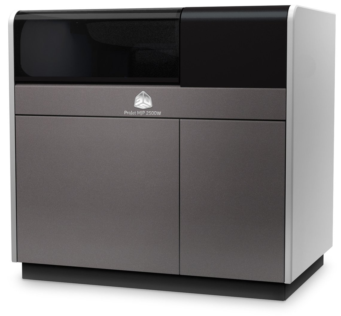 The PROJET MJP 2500W is a professional MultiJet wax printer designed for creating highly detailed patterns, ideal for jewelry casting and other precision applications. It offers versatile performance with two distinct printing modes: XHD for faster output at a high resolution, and ZHD for maximum vertical resolution (1200×1200×3200 DPI) with an exceptionally fine 8 µm layer thickness. The printer provides a net build volume of 294×211×144 mm and ensures high accuracy for the most intricate designs.